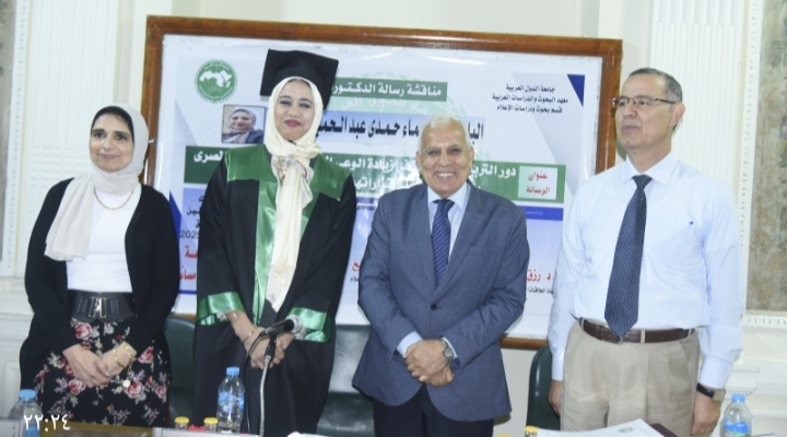 وفي مشهد علمي مهيب، توّجت الزميلة شيماء حمدي قنديل – نائب رئيس تحرير جريدة “أخبار اليوم” – يوم الإثنين الموافق 23 يونيو 2025م، مسيرتها الأكاديمية بحصولها على درجة الدكتوراه بتقدير عام “امتياز مع مرتبة الشرف الأولى”، من قسم الدراسات الإعلامية بـ”معهد البحوث والدراسات العربية” التابع لجامعة الدول العربية، عن رسالتها العلمية المتميزة بعنوان: